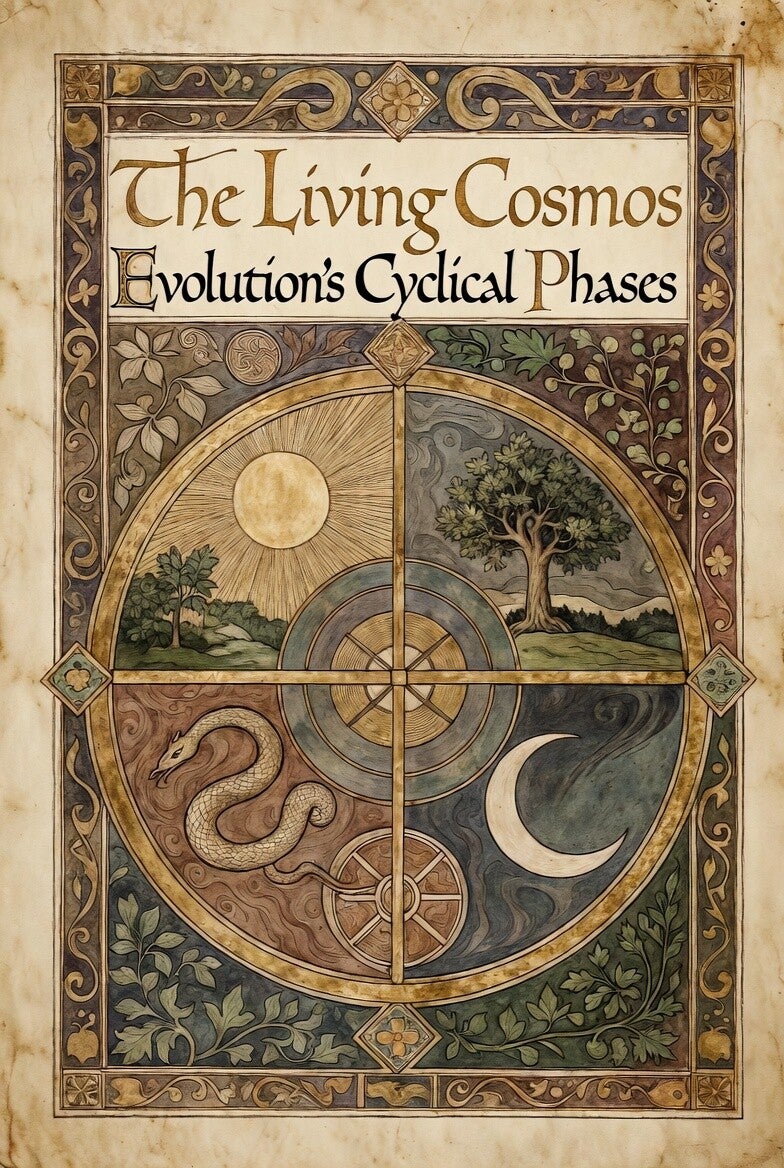 "The Living Cosmos: Evolution’s Cyclical Phases" (2025) by Gideon Flux radically extends Darwinian evolution beyond biology into an infinite, pulsating cosmic process within the living superorganism Coccotunnella perpetua, unfolding through an eternal cycle of phases—pre-material voids, material emergence, biological diversification, cosmic consciousness, galactic organization, and transcendent unity—governed by the universal "heartbeat" equation Cn = Pn + kn · Qn that mathematically captures escalating complexity across all scales. Building on the author's trilogy (The Organism We Are, On the Physics of Organic Earth series), the 146-page work reframes the entire universe as a single evolutionary organism whose roots plunge into pre-material chaos and whose canopy reaches transcendent realms, rendering linear time, entropy death, and materialist origin stories obsolete in favor of perpetual regenerative cycles driven by conscious self-organization. Ultimately, the book presents evolution not as random selection but as the cosmos' fundamental, purposeful pulse that binds microbes to galaxies in an unending ascent toward collective cosmic awakening and optional transcendence.